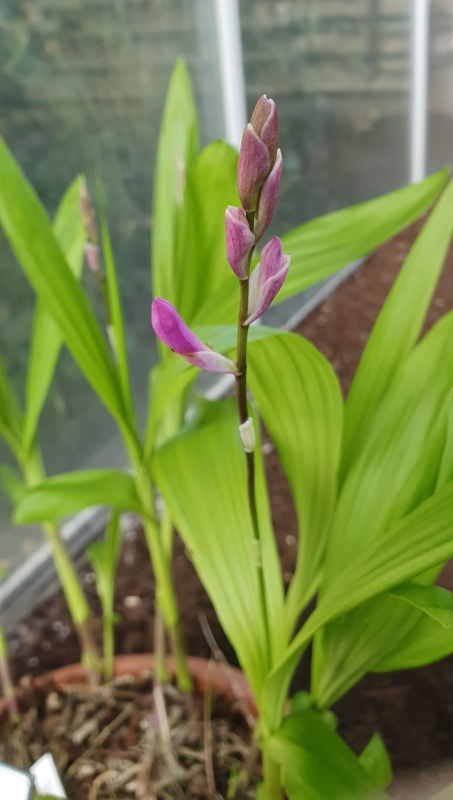 Ve skleníkovém areálu se postupně probouzejí rozličné jarní rostliny. Jednou z nich je i Bletilla striata, známá jako hyacintová orchidej, orchidej vzpřímená nebo také čínská pozemní orchidej.