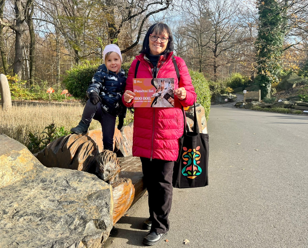 Jubileuszowym 600-tysięcznym gościem w tym roku została pani Jana z Ostrawy. Do zoo wybrała się z córką i wnuczką. Razem z rodziną odwiedzają zoo regularnie, mniej więcej raz w tygodniu, zatem korzystają z karnetów rocznych. Najbardziej lubią spacery poza sezonem. We wtorek słoneczna pogoda zachęciła ich do kolejnej wizyty. Jubileuszowi goście otrzymali pamiątkowy dyplom i torbę z upominkami z zoo. W rekordowym roku 2024 zoo powitało 600 000 gościa tydzień wcześniej.