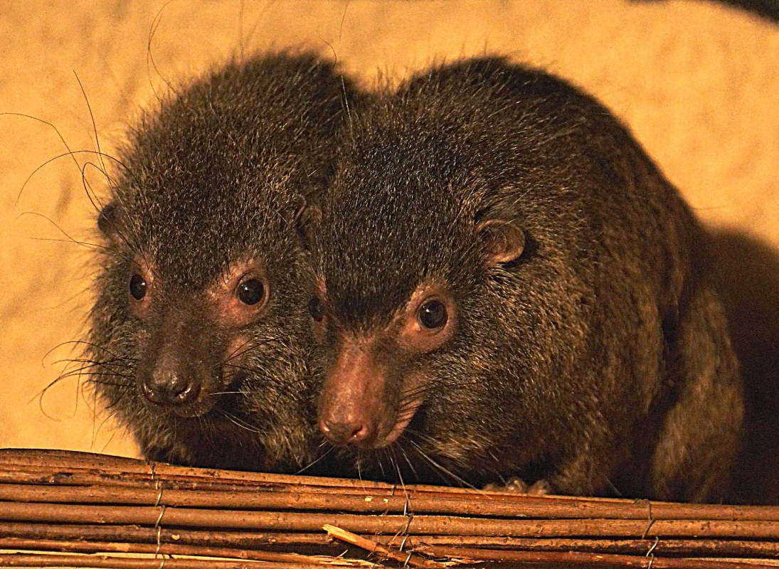 W obu przypadkach chodzi o pary hodowlane, przy czym osinaki są jeszcze bardzo młode i jak dotąd nie miały potomstwa. Natomiast arbogóralki drzewne rozmnożyły się już dwukrotnie w ekspozycji. Tegoroczne młode to bliźnięta. Mają trzy miesiące i na razie nie określono ich płci. Oprócz rodziców w grupie znajduje się jeszcze zeszłoroczny samiec, czyli w sumie pięć arbogóralków! Współżycie obu gatunków wydaje się przebiegać bez problemów. Ekspozycja oferuje wiele schronień zarówno dla ziemnych jeżatek, jak i arbogóralków. Nierzadko jednak zdarza się, że arbogóralek i jeżatka dzielą wspólnie jedną budkę na ziemi.