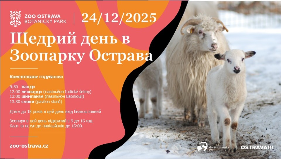 Ви можете відвідати Зоопарк і ботанічний парк Острава щодня протягом року. Зоопарк працюватиме на Різдво та Новий рік. Крім того, 24 грудня відбудеться різдвяна програма та подарунок для дітей до 15 років у вигляді безкоштовного входу.