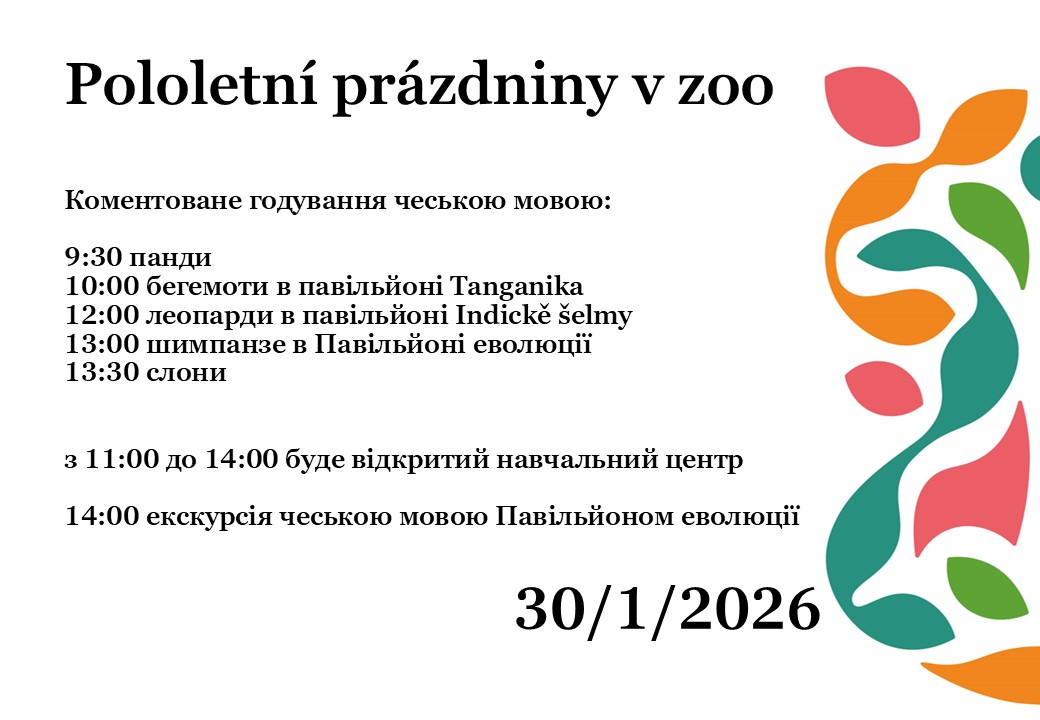 На піврічні канікули, 30 січня, на території остравського зоопарку для малих і дорослих відвідувачів підготовано супровідну програму. Відвідувачі зможуть відвідати спеціальні коментовані зустрічі біля вибраних видів тварин: